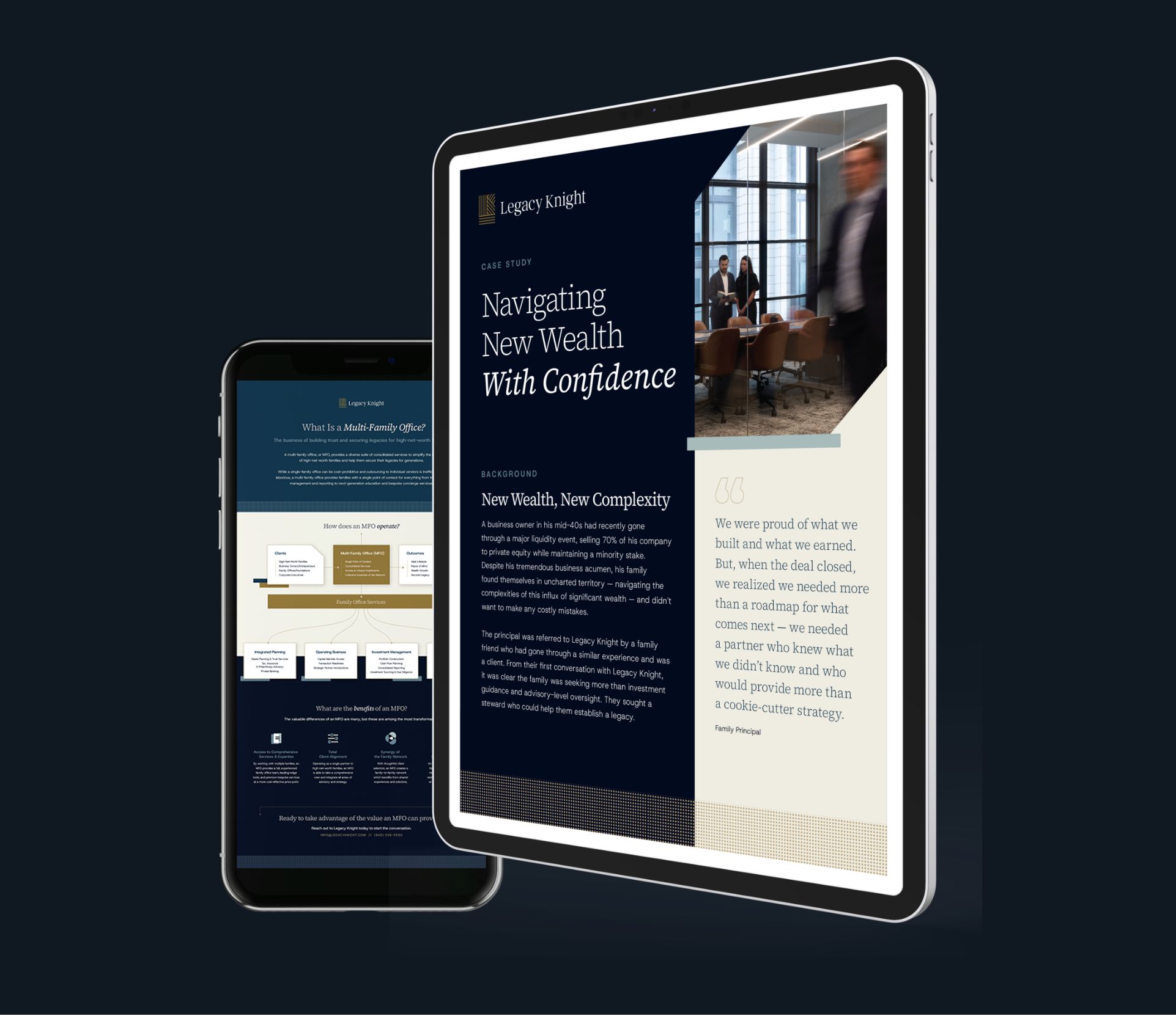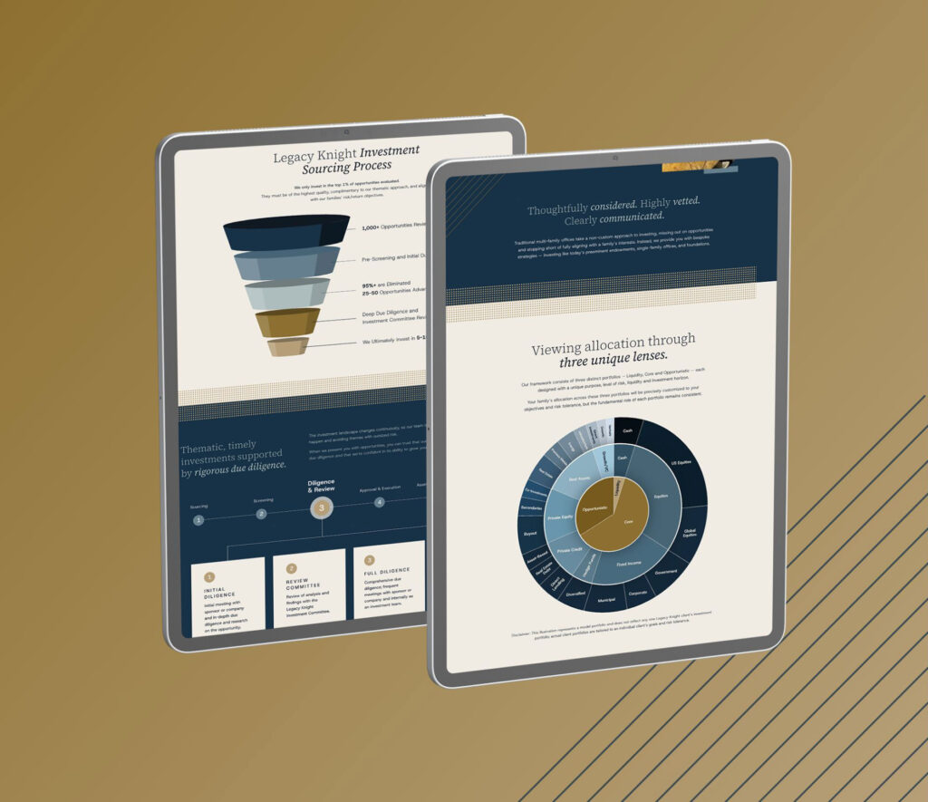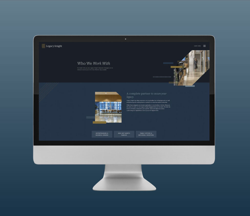 Legacy Knight has quickly made a name for itself as a forward-thinking multi-family office — one that takes a bespoke approach to every engagement. However, its brand, website and content were not reflective of its culture, nor did they effectively articulate the complete scope of its expertise. It needed a branding and marketing partner that would treat Legacy Knight the way the firm treats its families.